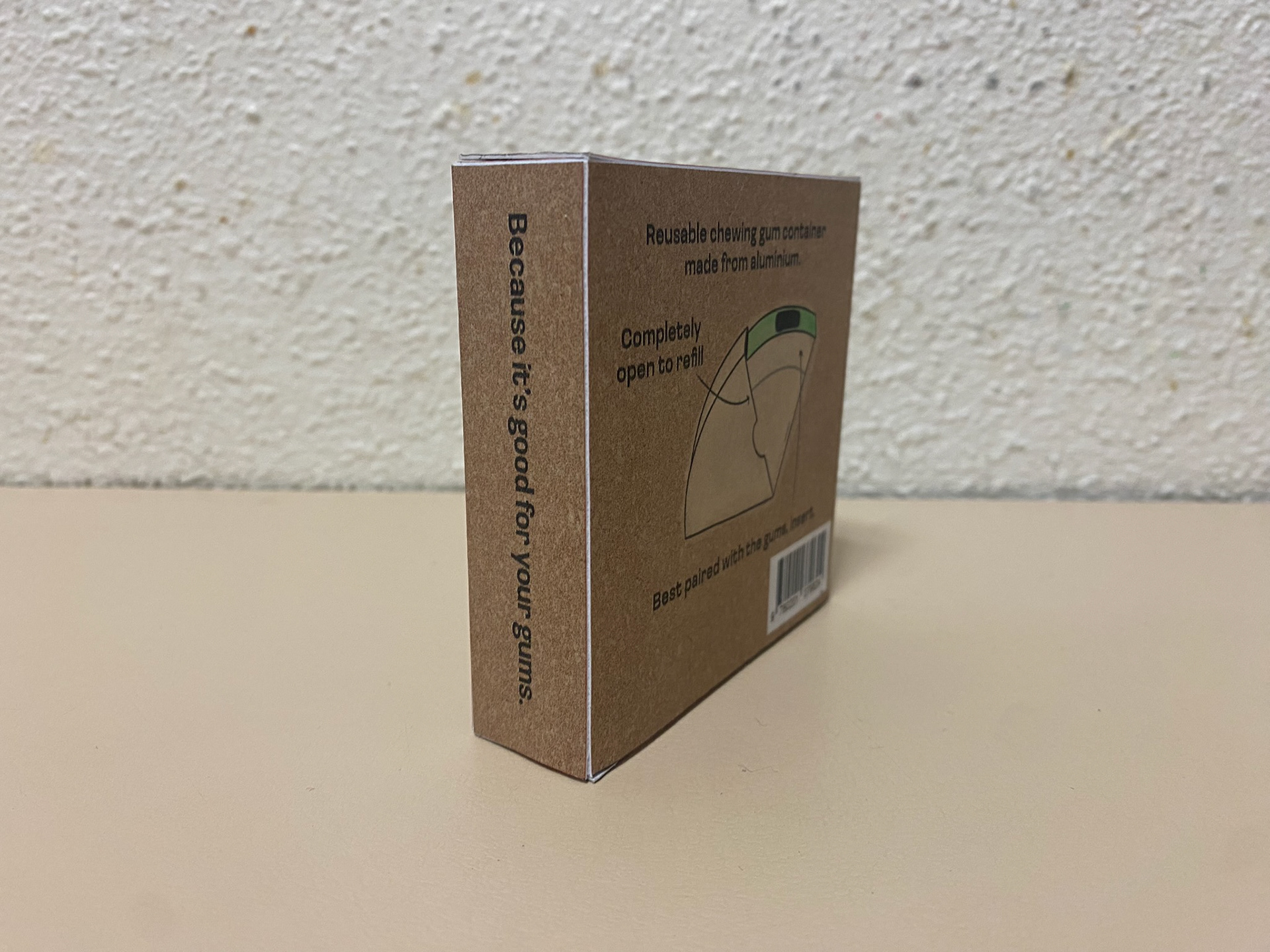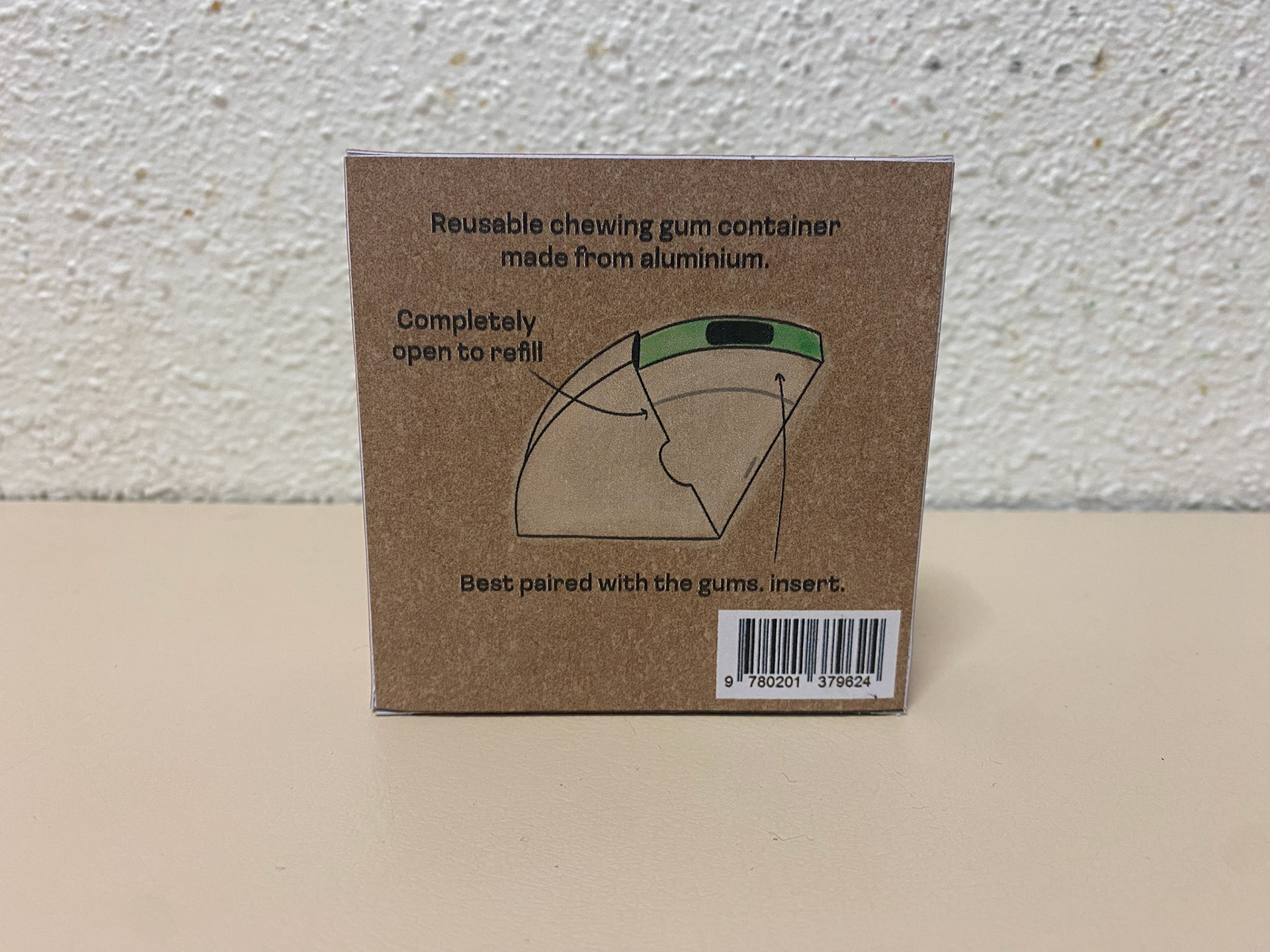 Dit concept bestaat uit een herbruikbare houder uit aluminium en inserts waar de kauwgom in zit.