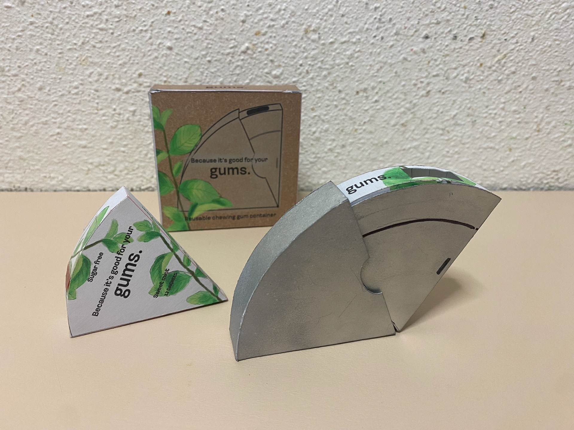 In functie van het vak 'Brand expert class: Packaging' maakte ik een verpakking dat een pijnpunt 'on the go' aanpakt. Hiervoor koos ik om een herbruikbare kauwgomverpakking te maken dat goed gesloten kan worden.